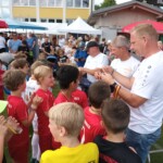 Am Freitag startete das Familiensportwochenende mit dem Elfmeter-Turnier. Es hatten sich viele Mannschaften angemeldet und es wurde hart um den Hauptgewinn gekämpft. Mehrfacher starker Regen tat der Stimmung dabei keinen Abbruch. Den 4. Platz belegten „Mehr schnell wie möglich“, den 3. Platz „Weltbester Papas Stammtisch Hirschau“, den 2. Platz „AS Tralkörper“ und Sieger wurden „Die einbeinigen Banditen“.